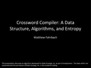 The automation of crossword puzzle creation is an extremely complex, computationally intensive, mathematics problem. We solved it. Our algorithm is available, for applications to both crosswords and cryptography – contact us to discuss.